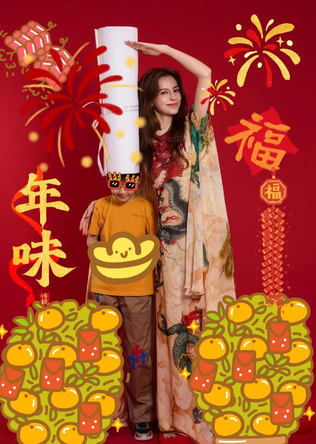 在蛇年春节之时,angelababy发布自己美照和儿子小海绵的合照,这也是首次在社交平台上发布有关杨颖自己儿子的内容: