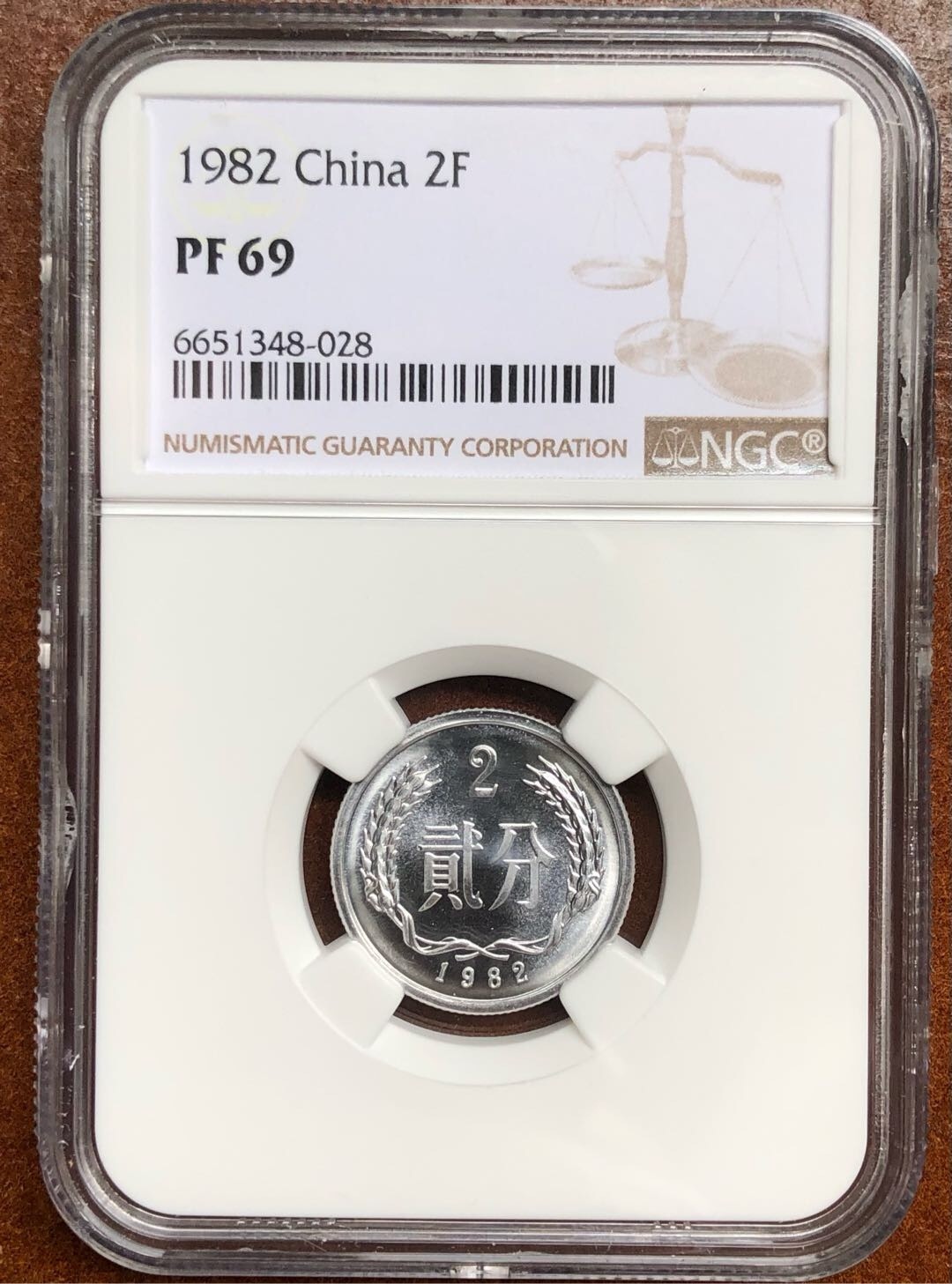 现在普通年份的硬分币的收藏价格很低,基本上都是按斤来卖的,只有一些品相好的,甚至是评级币才会有更高的升值,我们今天介绍的这枚硬币是属于1982年发行的两分硬币,这是一枚精制币,并且他的评分达到了69分,他的收藏价格在710元,这枚硬币涨了35500倍以上,大家觉得它是否值这个价格呢?