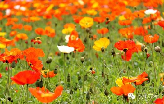 一年生虞美人有红色、橙色、橘色、黄色、白色,也有粉红和淡紫色。每一朵虞美人只开一两天,但是新的花朵陆续有来。所以最好是在花谢后将花头摘去,这样才更容易有新的花。