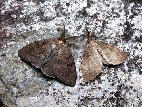 舞毒蛾(毒蛾科),毒蛾科是森林的重要害虫,大暴发时往往能将整棵树的叶片吃光,因其时常在白天时大量在林中飞舞而得名,雄虫翅面色深,雌虫翅面的色浅。