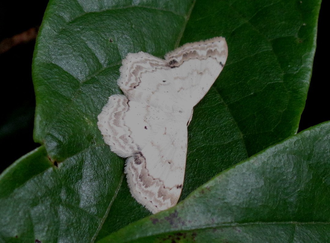 花边灰姬尺蛾(尺蛾科),躲在阴暗的叶片上,静静地等待夜晚的到来