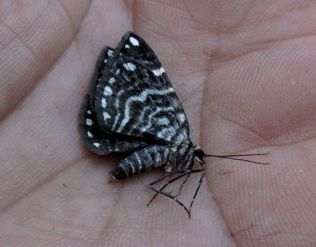 黑白汝尺蛾(尺蛾科),一种个体很小的尺蛾科种类,白天在林子中快速飞舞,尺蛾科的成虫不少会在白天出来活动的,但只局限于林子内。