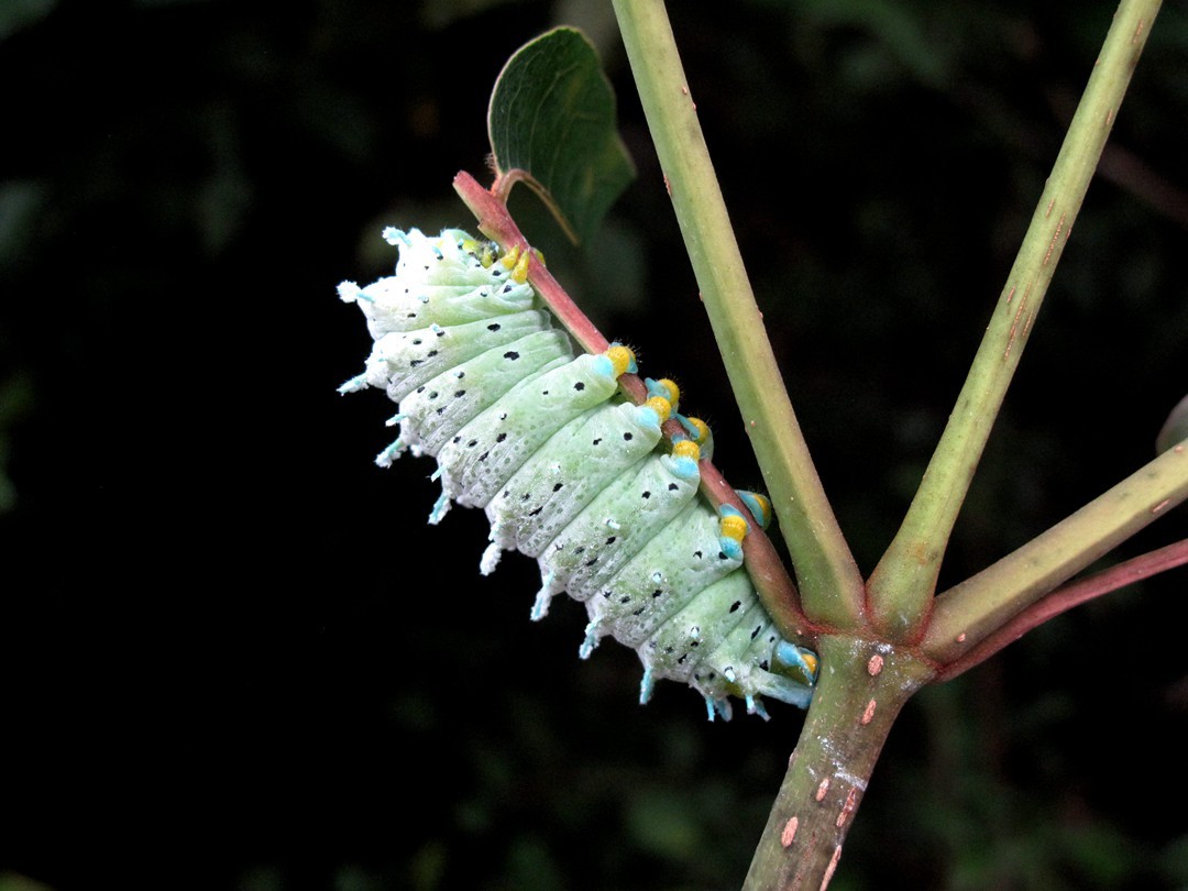 樗蚕蛾的老熟幼虫(大蚕蛾科),大蚕蛾科的蛾子都是大型观赏性的种类,樗蚕吐丝作茧,这种蚕丝也可被利用作为纺织的原料,幼虫的食性相对较杂,比如臭椿、香樟、樗叶花椒等,这是在臭辣树上见到的樗蚕,幼虫体表有白色的蜡粉,是个很有识别度的种类。