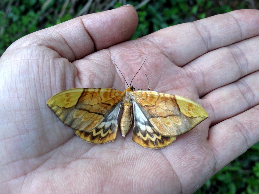 枯叶尺蛾(尺蛾科),其实也是种比较华丽的彩蛾子,只是翅膀的颜色比较易褪色