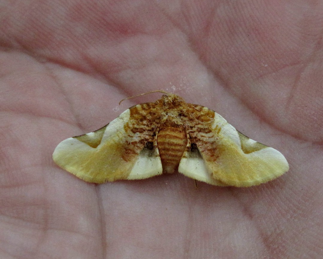 用软件识别结果是种刺蛾科的种类,感觉其个体的大小超越了刺蛾科,我暂且将其归入到枯叶蛾的类别,这个科的种类都与枯叶干上了。