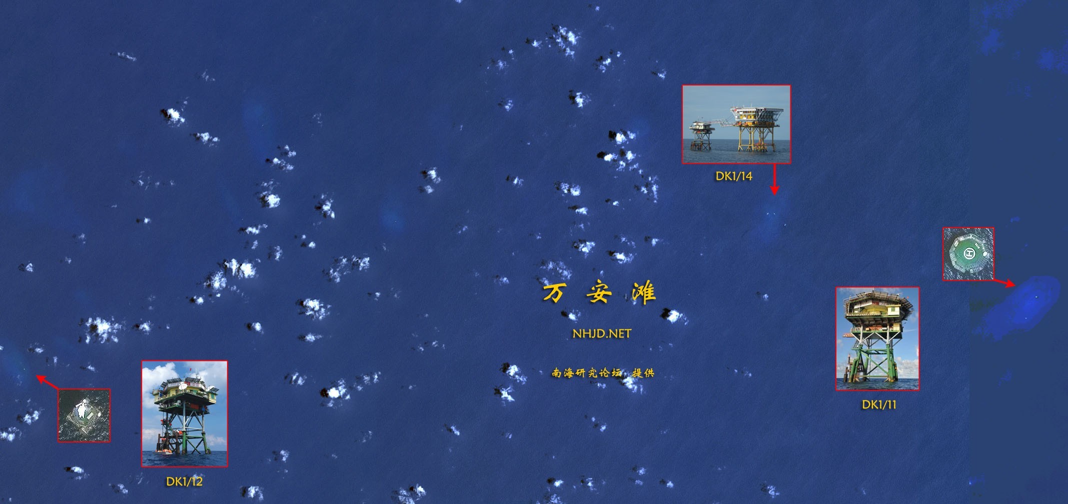 1994年5月5日,万安滩编号为DK1/11的高脚平台建成,1994年8月8日,越南又在万安滩建成了编号为DK1/12的高脚平台,1995年4月20日,编号为DK1/14的第三座高脚平台也落成。