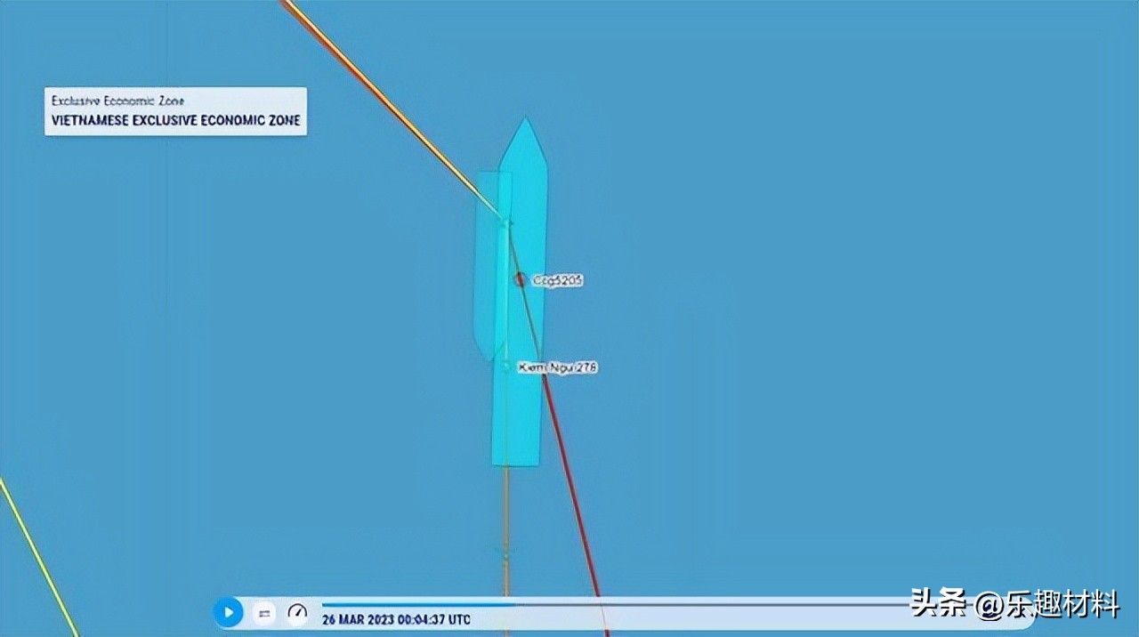 2023年3月26日中越两船位置图(大图标为5205舰)
