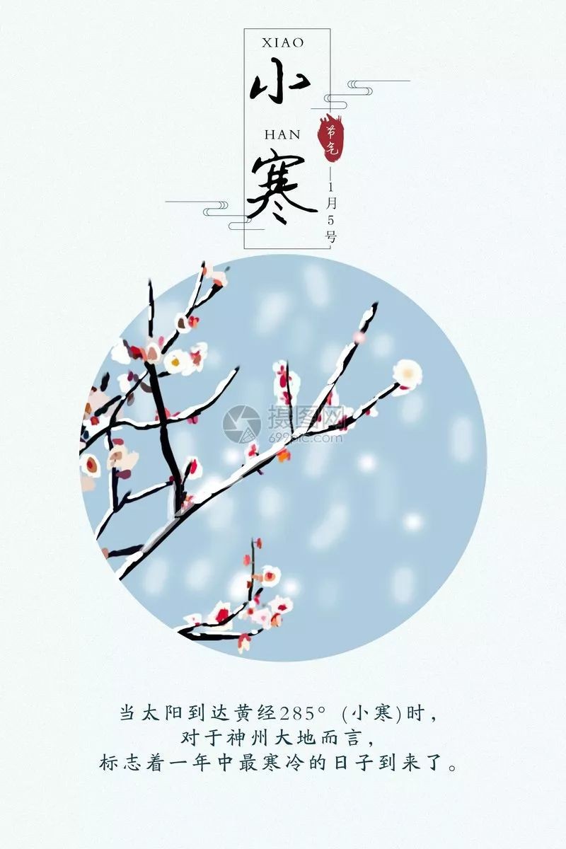 古代对小寒的解释为:“冷气积久而为寒,小者未至于极也”,由于还未到冬季最冷的时候,故此节气为小寒。与小寒相对应的物候现象为“雁北乡向,鹊始巢,雉鸟鸣”,此时冬季即将结束,雁鸟飞向北方,万物开始活动起来了,而此时农作物大部分也已收成,家家户户准备办年货,迎接新的一年到来。小寒要比大寒冷。民间有谚语说:大寒小寒,冷成冰团。在中国大部分地方,小寒是一年中气温最低的节气,只有少数年份的大寒气温才低于小寒。