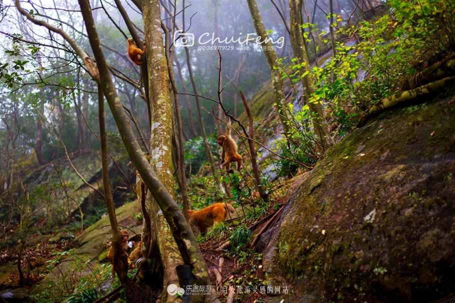 继续下山,来到了猴谷,猴子们时而跳上跳下,时而摆弄自己,时而互相嬉戏。