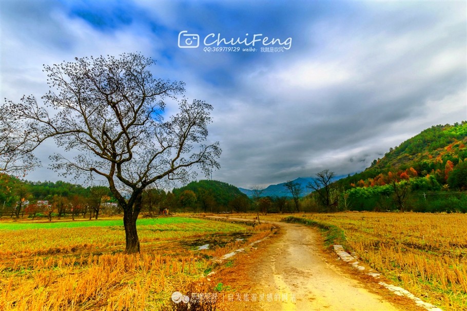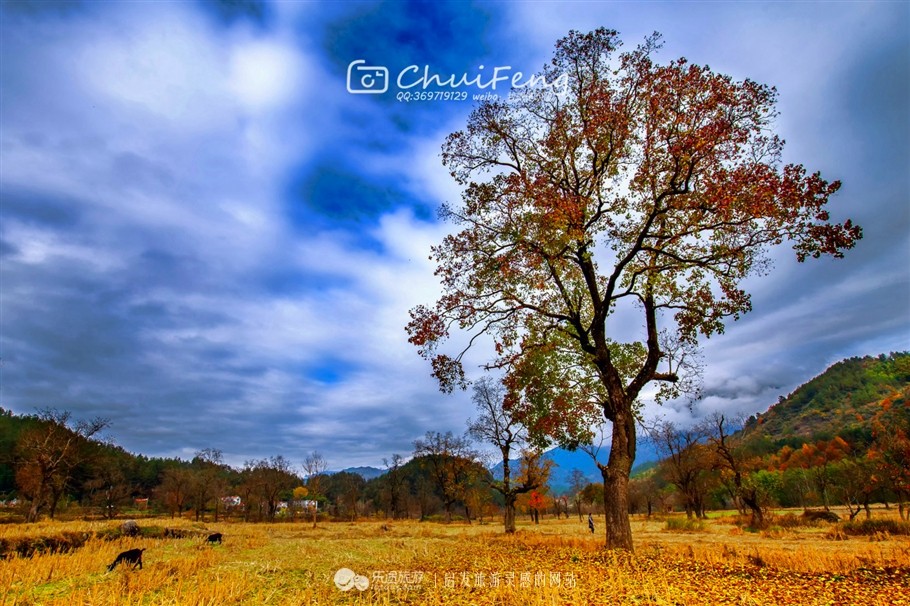 说起罗田,罗田是一个“八山一水一分田”的山区,位于湖北省东北部、大别山南麓,一大早驱车2个多小时来到了罗田天堂寨脚下的圣人堂村,中国最美的乡村之一—九资河圣人堂村,每年11月初-11月20日,是圣人堂村观赏红叶的最佳时间。乌桕树叶由绿变红,就是一片舞动红色的海洋,可惜这次时间来得晚了点,上周雨水不断,红叶也都落了,但是就是这样,也足以能够感受到它的魅力。