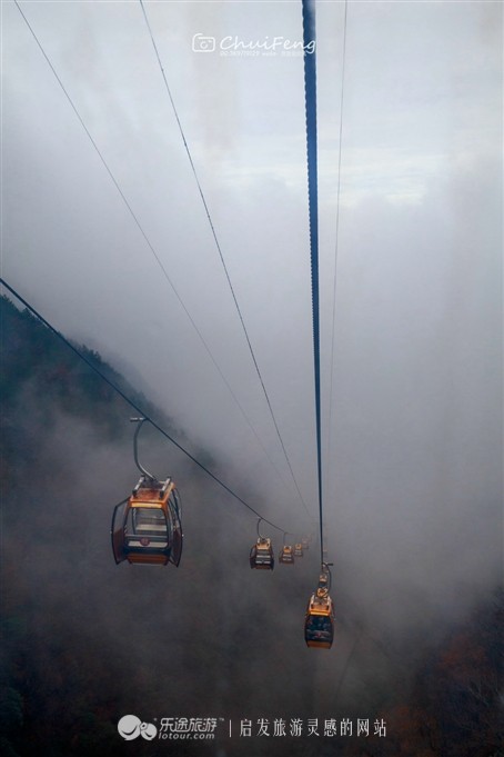 乘坐缆车上山,可惜天空不作美啊,一直都是大雾弥漫,但是也增加了一丝神秘感。