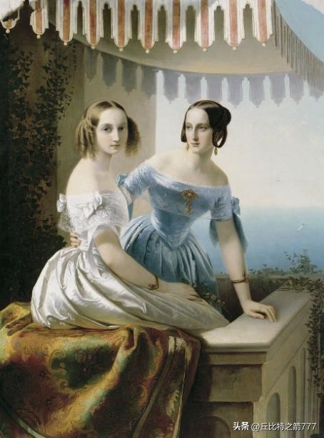 这些年轻女士们的服装也是内夫画作中的一大亮点。华丽的礼服、精致的首饰、优雅的发型,无不展现出那个时代的时尚与优雅。内夫对服装的材质、色彩和纹理的描绘非常细腻,让我们仿佛能感受到那些丝绸的柔软、珠宝的璀璨。这些服装不仅是美的装饰,更是她们身份和个性的象征。