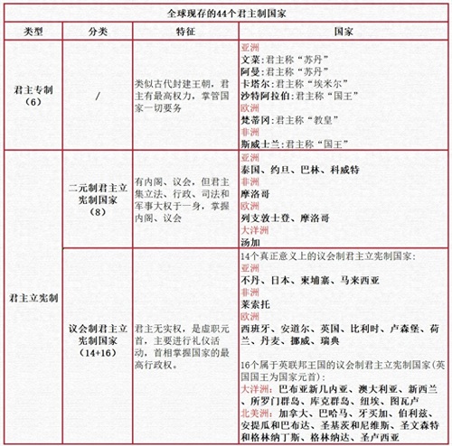 44个君主制国家列表