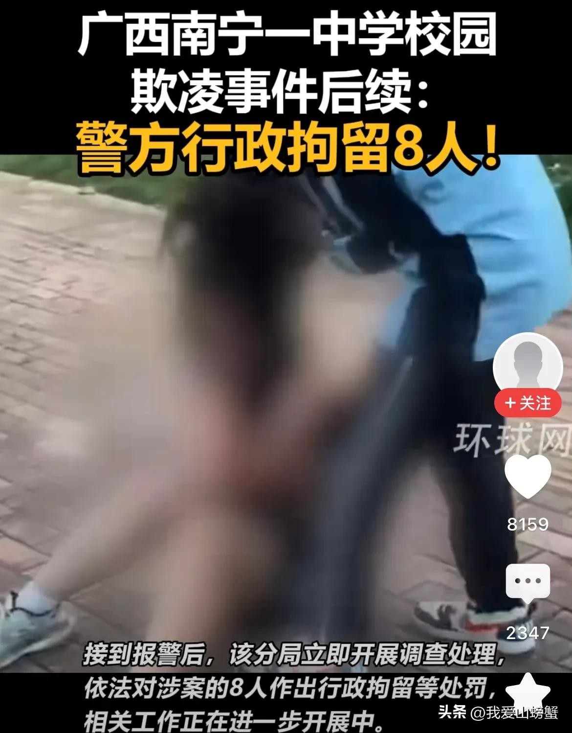 近日,广西南宁某中学女生光天化日之下在校外被几名身穿校服的学生强行殴打、用脚踩踏,甚至还强行脱光该女生身上所有衣物!
