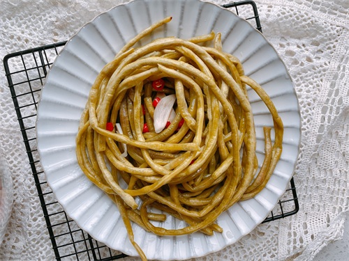 1、酸豆角炒鸡胗的主角是酸豆角和鸡胗,酸豆角是自己腌制的,腌好的豆角酸酸脆脆的,具体腌制方法之前和大家分享过2种,有需要的朋友可以去看看,整根腌制的酸豆角捞出来,放在一边备用;