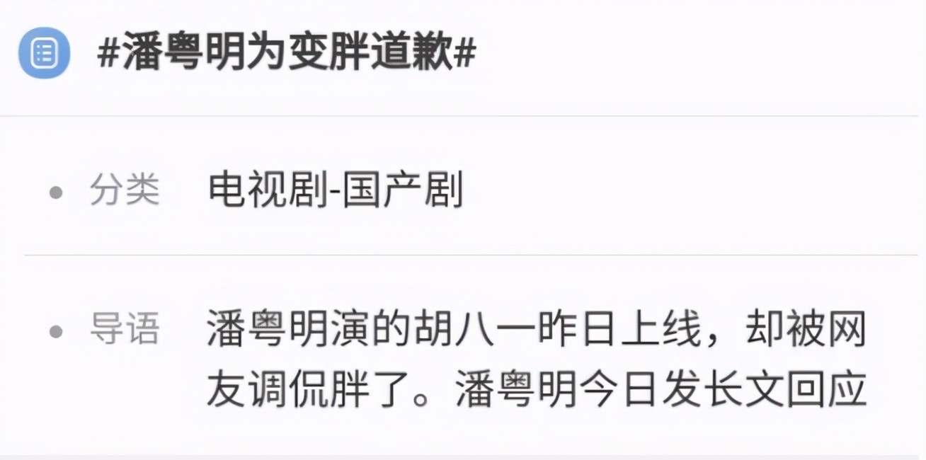 力证自己很优秀的潘粤明,带给观众的全是惊喜,他饰演的胡八一收获了不少的好评,虽然潘粤明的演技被认可,但是因为潘粤明的体型偏胖,被剧迷吐槽了很久,为此,潘粤明还为自己的“胖身材”而道歉。