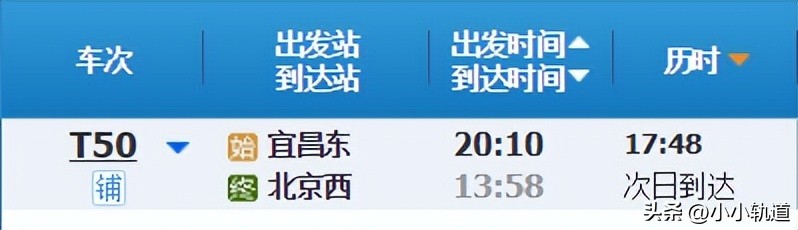 宜昌进京唯一特快,T50次列车耗时17小时48分钟,停靠15个站