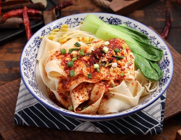 五、油泼面: 油泼面是西安的一道经典面食,以其浓香的油泼汁和面条的弹牙口感而闻名。面条选用手工制作的宽面条,煮熟后捞出,放入热油中翻炒,再加入葱姜蒜末、花椒等调味料,最后淋上特制的酱油和醋。油泼面以其浓厚的香油和鲜美的口感,成为西安人早餐和小吃的首选之一。