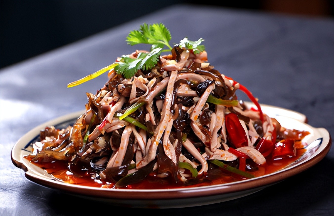十、温拌腰丝: 温拌腰丝是西安的一道名菜,选用新鲜的猪腰子切成丝,用姜葱料酒腌制后,快速炒制至熟软,配以特制的调味汁如酱油、醋等,口感鲜嫩香浓。温拌腰丝以其鲜美的口感和独特的风味,成为西安餐桌上不可或缺的一道佳肴。