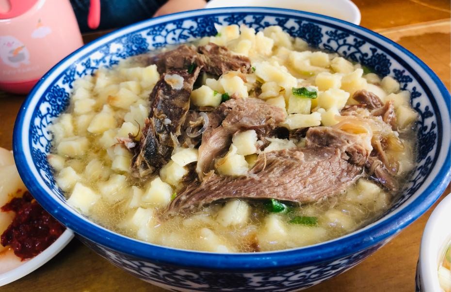 二、羊肉泡馍: 羊肉泡馍以其独特的浓香和丰富的肉汁而著称。制作时,选用优质的羊肉,切成小块,加入各种香料和调味料,炖煮至肉质鲜嫩。馍则选用发面烤制而成,泡入羊肉汤中,使馍吸收肉汤的香味和味道。羊肉泡馍以其浓厚的肉香和软糯的面食,成为西安冬季暖胃的必选美食。