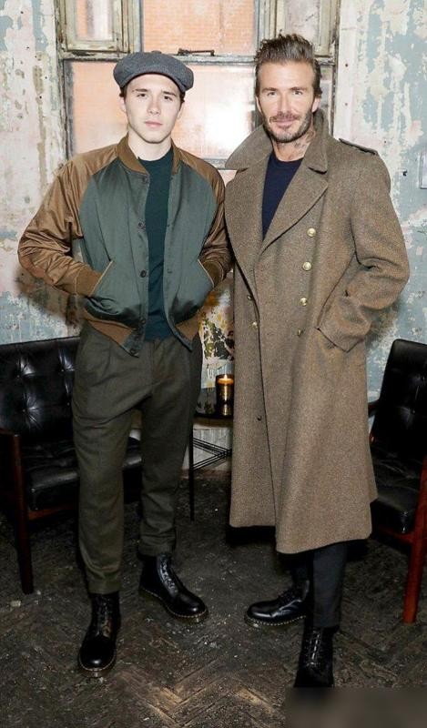 同时,贝克汉姆父子也会选择大衣来搭配马丁靴,毕竟马丁靴的鞋型设计随意,所以不管是长款还是短款的大衣,都可以直接用马丁靴去搭配,而如果是选择长款的大衣,那么我们在搭配的时候也可以在腰间搭配腰带进行修饰。