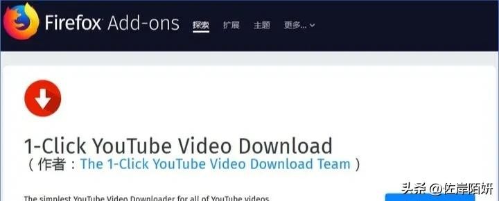 这里的浏览器主要指的是火狐浏览器。由于谷歌的政策限制,支持下载油管视频的插件基本都会被下架,很难找到一个合适的。这里推荐使用插件:1-Click YouTube Video Downloader,这个插件支持YouTube上面音频和视频的下载。