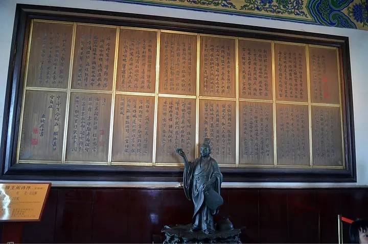 这是初唐四杰之一王勃22岁途经南昌时,恰逢当地都督阎公设宴,王勃在宴上写下的千古第一骈文《滕王阁序》的落款诗,正是因为这篇《滕王阁序》,让滕王阁一举成为中国名楼之列。滕王阁位于江西南昌赣江与抚河故道交汇处。依城临江,瑰伟绝特,滕王阁与湖北黄鹤楼、湖南岳阳楼并称为江南三大名楼。