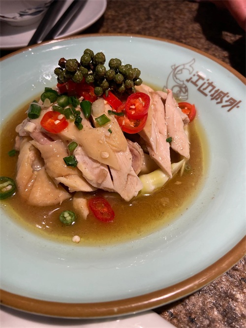 麻而不辣的调味,配上脆爽的鸡皮与绵柔的鸡肉