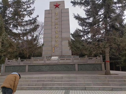怀着敬仰之情,我走进了烈士陵园,一座雄伟的纪念碑静静地矗立在松柏之间,静静地诉说着那段历史。纪念碑下有三级台阶,象征着组成红军西路军的五军、九军、三十军。碑重21800斤,象征着西路军21800人。碑体正面是徐向前元帅题写的“中国工农红军西路军永垂不朽”。望着这庄严的纪念碑,我好似看到了烈士们英勇就义时的义无反顾,为了国家和人民奉献自己生命的英勇无畏。纪念碑后方为墓区,共安葬着1776位烈士的遗骨。在解放青海的过程中,有很多红军战士壮烈牺牲,他们为祖国统一,人民解放,在西北献出了宝贵的生命。