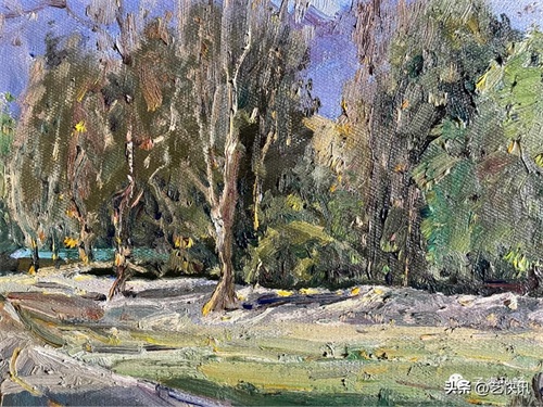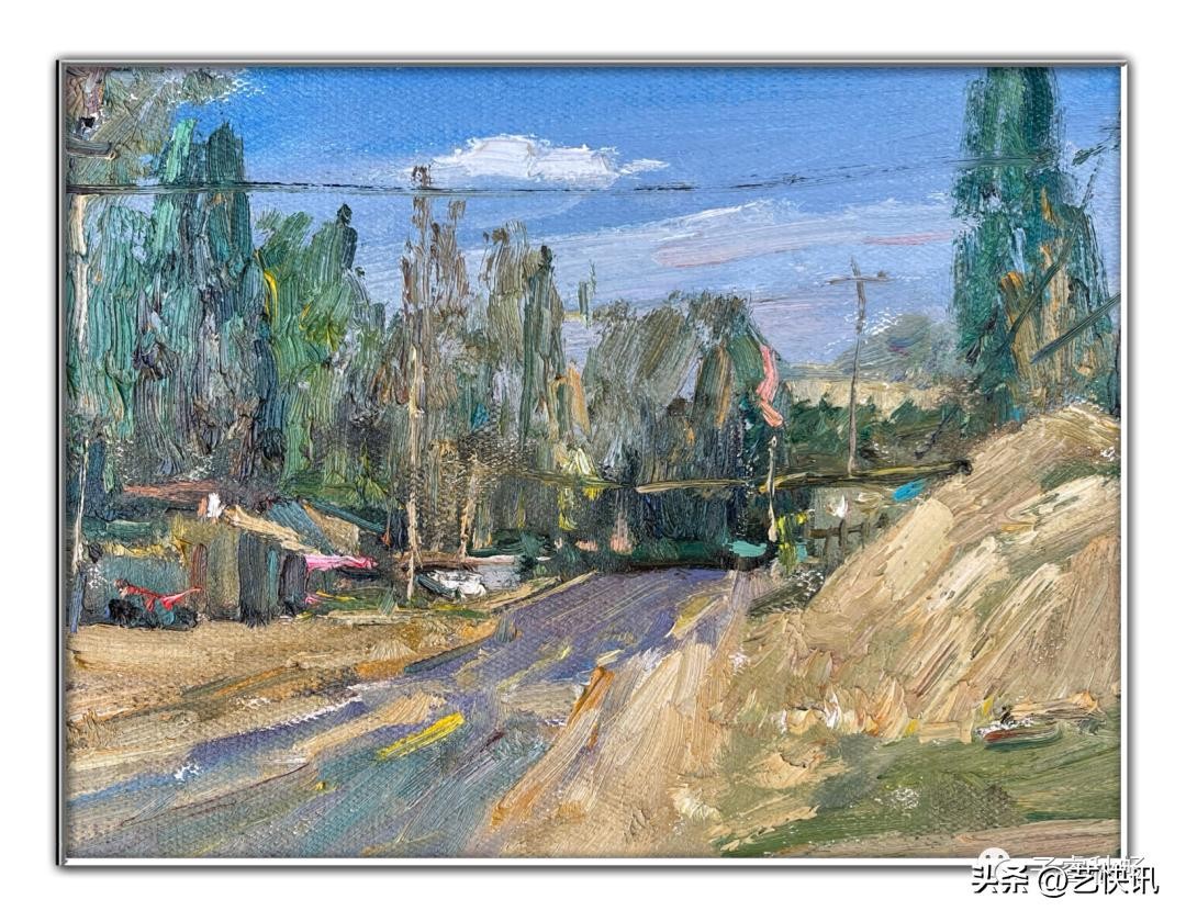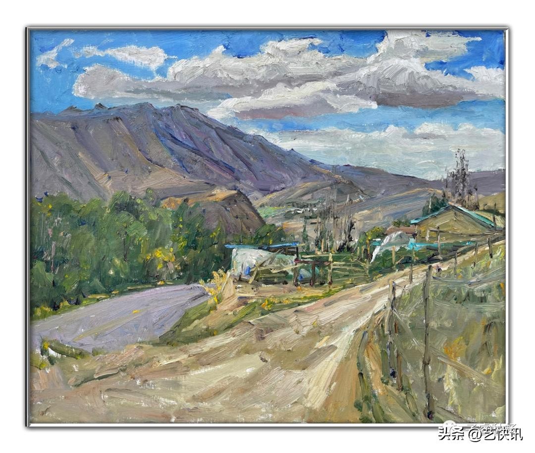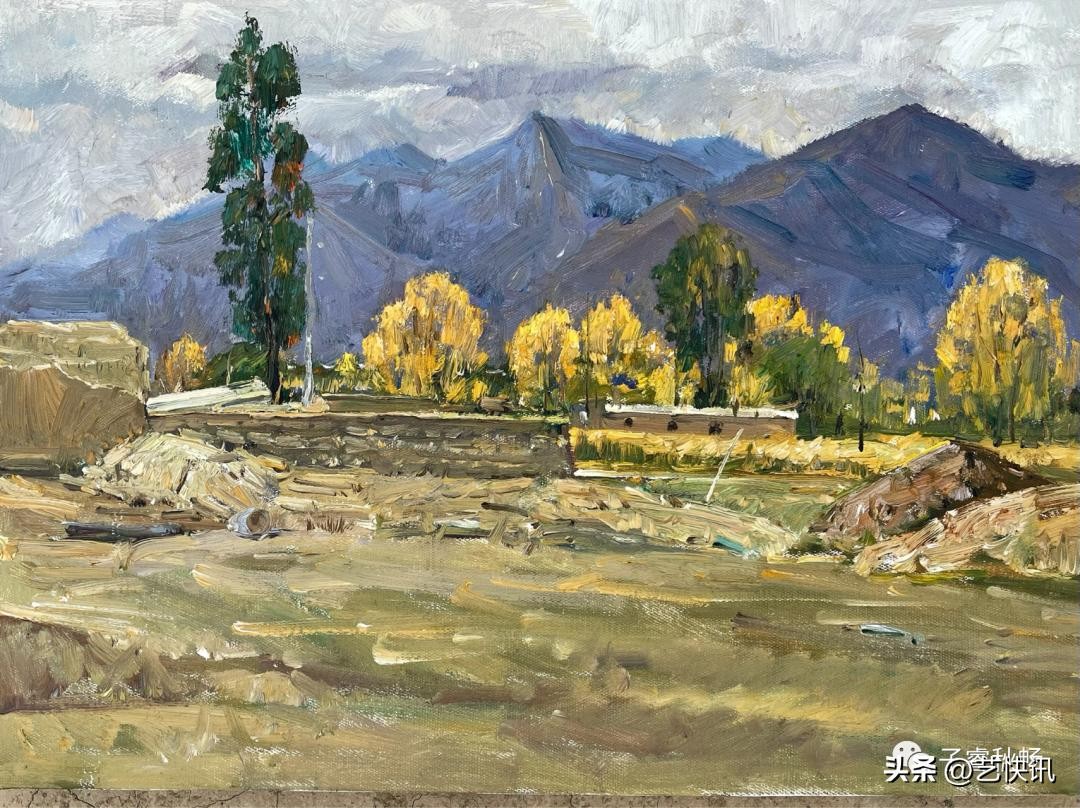 我们先将画材快递到乌鲁木齐由朋友代收,热情的老朋友腾出一辆陆巡越野给我们自驾,为写生提供了极大的方便;新疆油画家卢野先生联系写生点的吃住,交通、生活、作画皆有妥善安排。我们先后在吉木萨尔县的新地乡小分子画家村、乌鲁木齐县的庙尔沟乡两地写生作画。