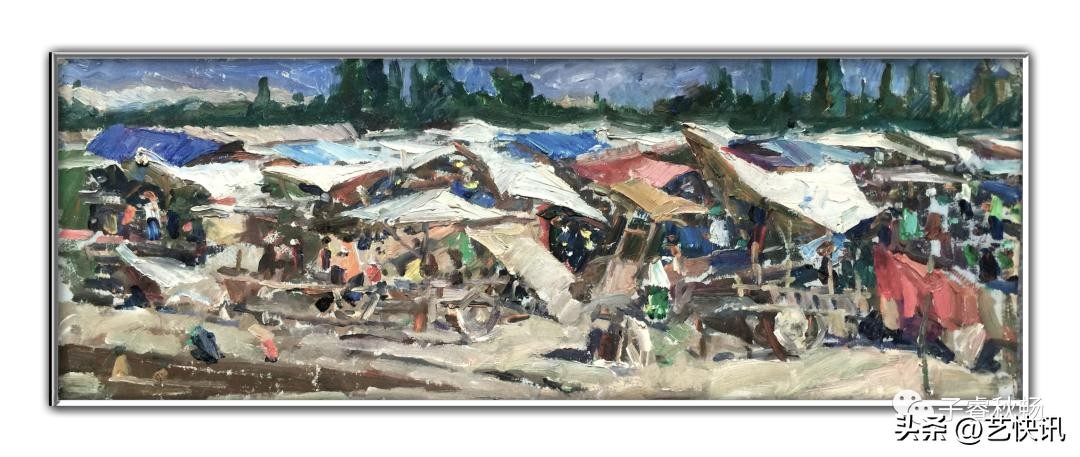 阿克苏的巴扎(纸品油画)60×23cm 1981年
