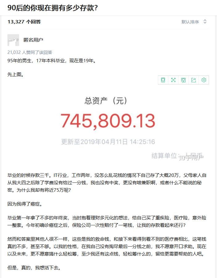 知乎上一个匿名答主,在问题:90后的你现在拥有多少存款?下面的回答让人泪奔。