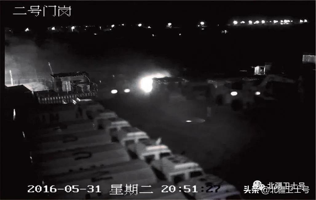 离哨位不远的营区监控记录下了这一惊心动魄的场景:20时50分54秒,袭击车辆撞上营区门口的防护墙,迅速燃烧起来。20时51分29秒,爆炸发生。