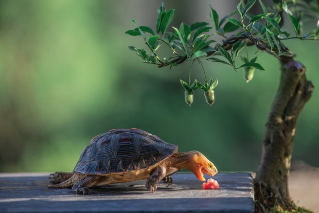 栖息在河水中的河水龟由于生态环境的破坏和人类的捕捉,已经陷入濒危状态。