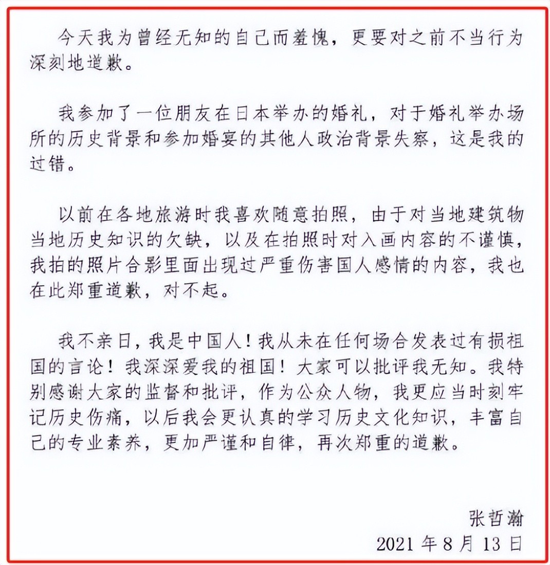 二十年后(2021年8月),赵薇旗下艺人小张被网友曝出,多次去往日本的“神厕”拍照,并和反华人士黛薇夫人合影。