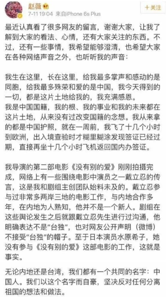就在众人纷纷呼吁抵制该影片时,赵薇团队彻底慌了,赶紧让戴立忍出来道歉,但这篇道歉声明似乎字字都在倾诉自己的“委屈”。