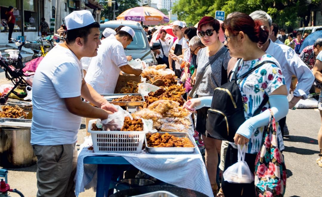 别具一格的清真食品小市场里,传来此起彼伏的吆喝声,头戴白色礼拜帽的老人互道“色俩目”,构成了一幅富有民族风情的画面。