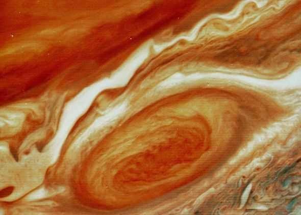 在大红斑风暴气旋的中心是风暴气旋内核,它随着风暴一同移动,但一直保持在中心位置。据说这个大红斑风暴已经至少存在200多年了,至今还未消失,有人猜测这是一个永不停息的风暴。
