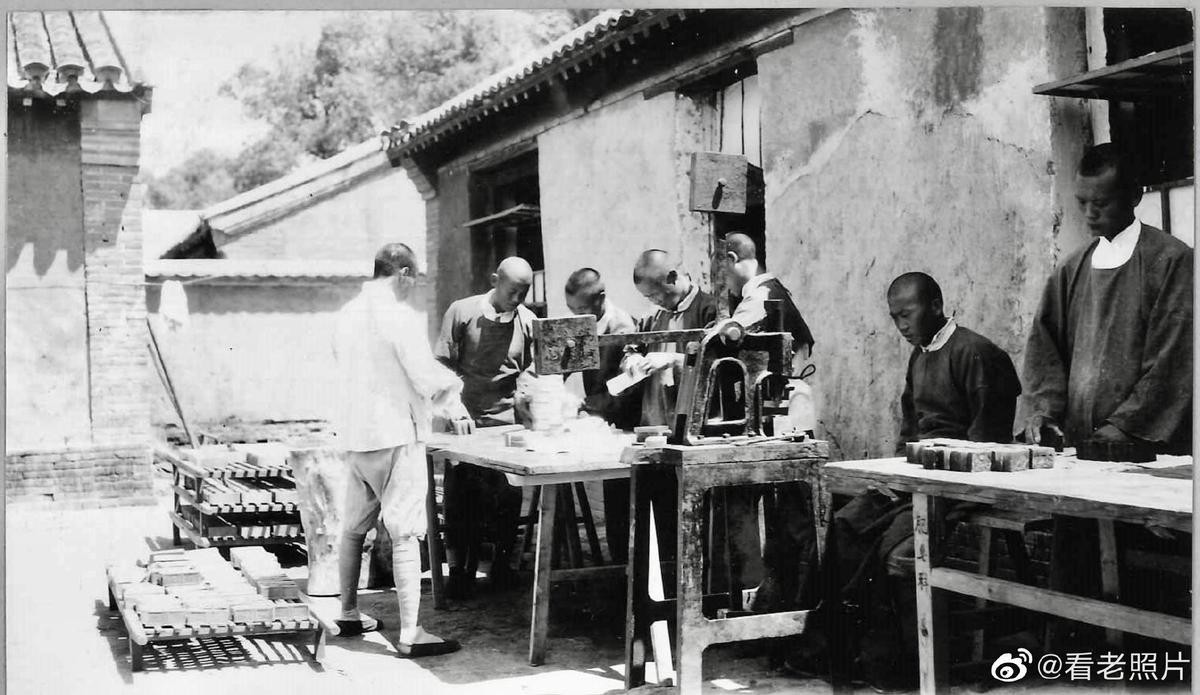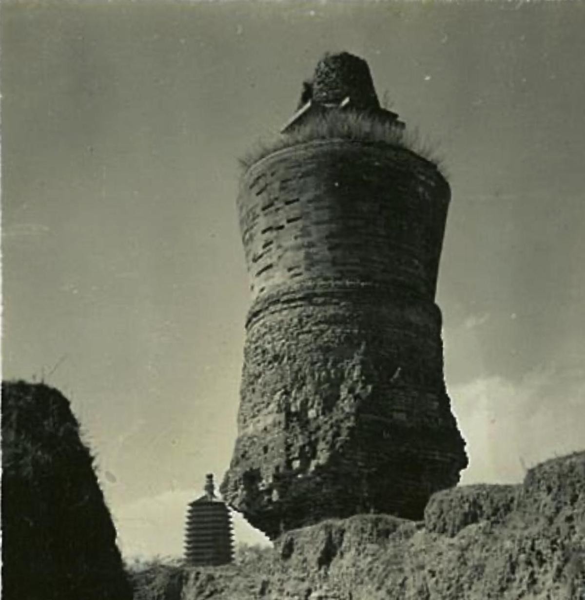 (21)北京广安门外天宁寺塔。建于辽代。图1和图2,造纸工匠用传统工艺晾纸。拍摄于1938至1942。