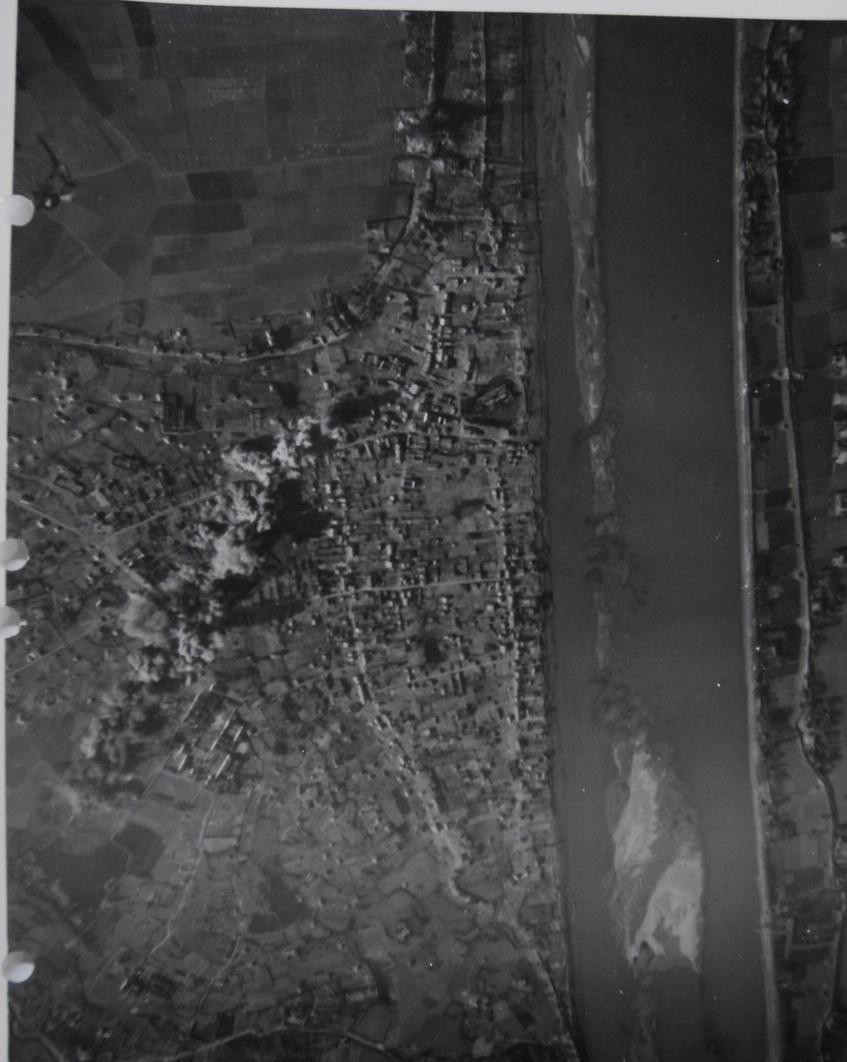 (09)1943年10月至11月,美国空军第十四航空队配合国军常德会战进行侦查和轰炸。这组是当时拍摄的会战地区鸟瞰图。图1,汉寿。图2至图5,常德。图6,石首。图7至图9,沙市。图10和图11,华容。图12,公安。