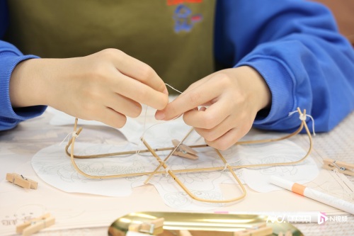 首先,面对一堆看似简单的竹条和纸张,同学们需要学会如何巧妙地利用竹条的韧性与弹性,搭建起纸鸢的骨架。老师耐心地示范如何用竹条勾勒出纸鸢头部与翅膀的曲线,再用夹子固定,确保每一部分都能精准对接。扎好骨架,再用棉线缠绕固定,每一步骤考验着同学们的耐心。
