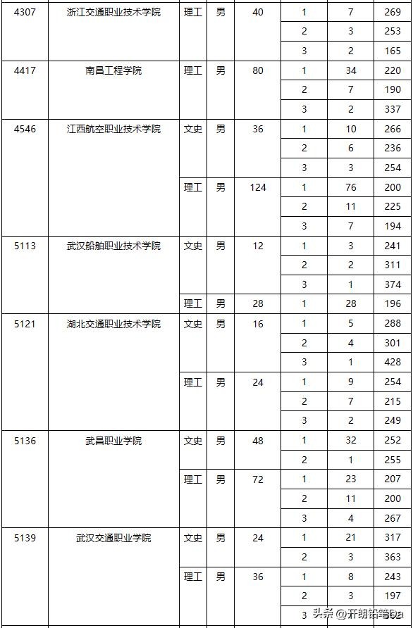 理科中高分和低分差距比较大,像高一点的有325分的,对应的是西安航空学院,这个分数接近于本科线了,低一点的是171分,对应的是重庆机电职业技术大学。