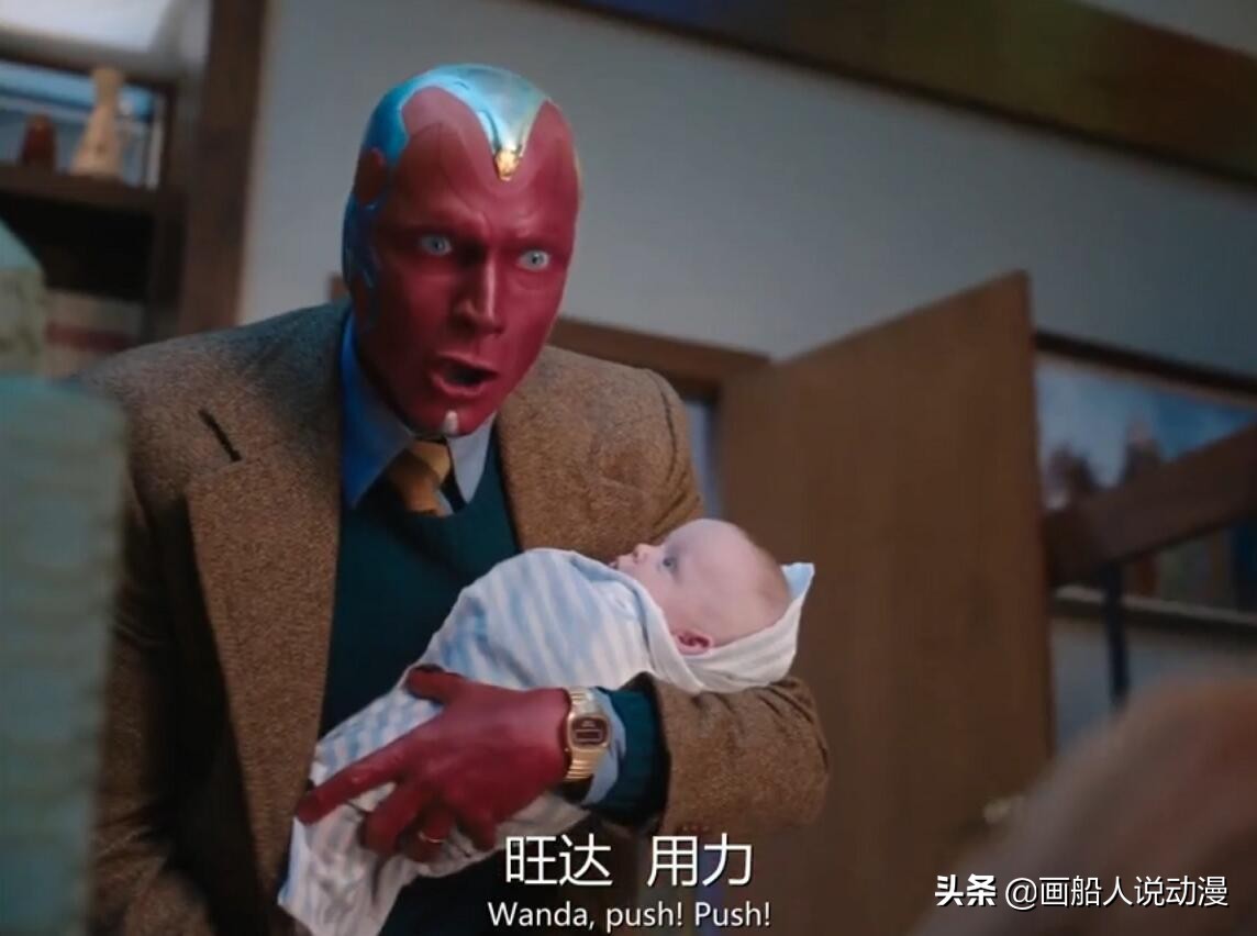旺达在创造出一个幻想的世界之后,她发现这个小镇上的事物也并非完全由她控制,不过一些事物还是遵循着固有的规律。绯红女巫旺达一直都想要和幻视有自己的孩子,然而这个时候她眼前的幻视不过是旺达所控制的行尸走肉般的残躯,即便是真正的幻视也无法和她正常生育,因为幻视是一个半人半机器的生命体,并不具备生育能力。