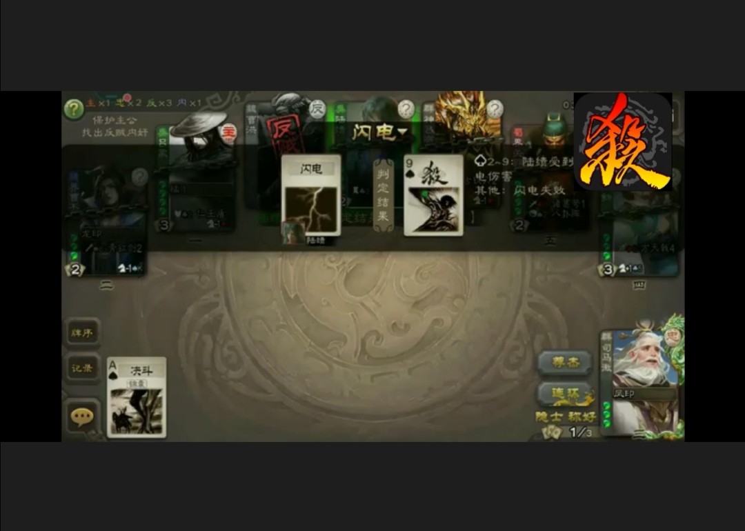 哈喽大家好,我是周小输。三国杀这款游戏有三类卡牌,分别是装备牌、基本牌、锦囊牌,而其中锦囊牌又分非延时锦囊和延时锦囊。其中延时锦囊有三种,分别是:乐不思蜀、兵粮寸断、闪电。其中乐和兵都是控制敌人使用的,只有闪电是对自己使用,然后下家轮流判定的。这张牌判定成功了,就会对角色造成三点雷电伤害,可以轻而易举的改变局势。