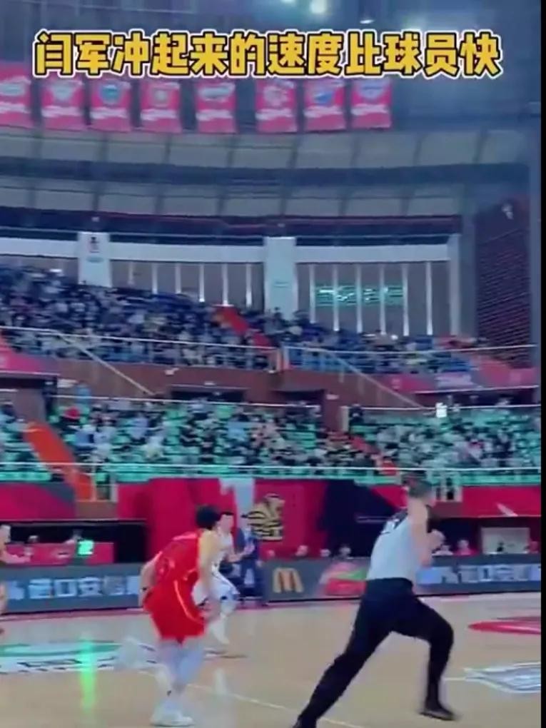 4月25日,媒体人赵环宇转发了一则闫军的视频。视频中,闫军赛前在场边进行非常认真慢跑热身,随后视频中发生的一幕把我惊呆了。当时吉林球员姜宇星抢断成功持球打快攻,此时我们看到场边执裁的闫军也立刻转身,来了一次与姜宇星的“赛跑”。最终闫军看起来比持球打快攻的姜宇星跑得还要快。