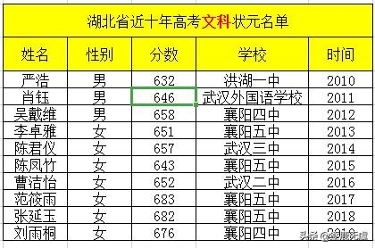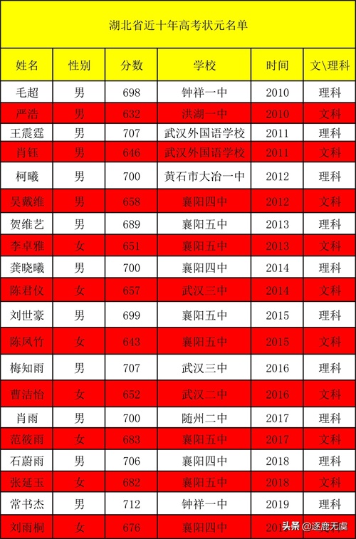 从上面名单可以看出,2010年到2019年期间,理科状元分数在700分及以上达到7人,文科都是在700分以下;合计20位状元,女生为7人,男生为13人。