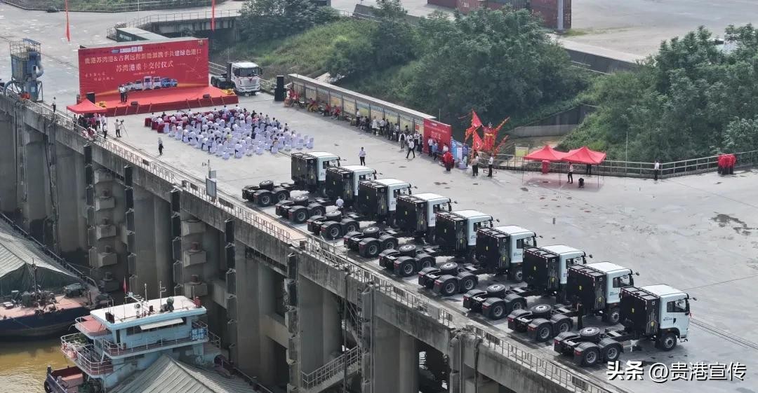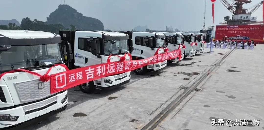 9月27日上午,北港西江港口旗下的贵港西投公司,联合吉利万物友好公司、上海森储物流公司主办的新能源重卡交付仪式,在贵港苏湾港举行。经多方资源整合,由吉利万物友好公司制造的第一批共20台新能源重型牵引车正式交付物流运营商使用,并以贵港苏湾港作为新能源车辆的实践应用场景,通过物流“含绿量”持续提升港口发展“含金量”。