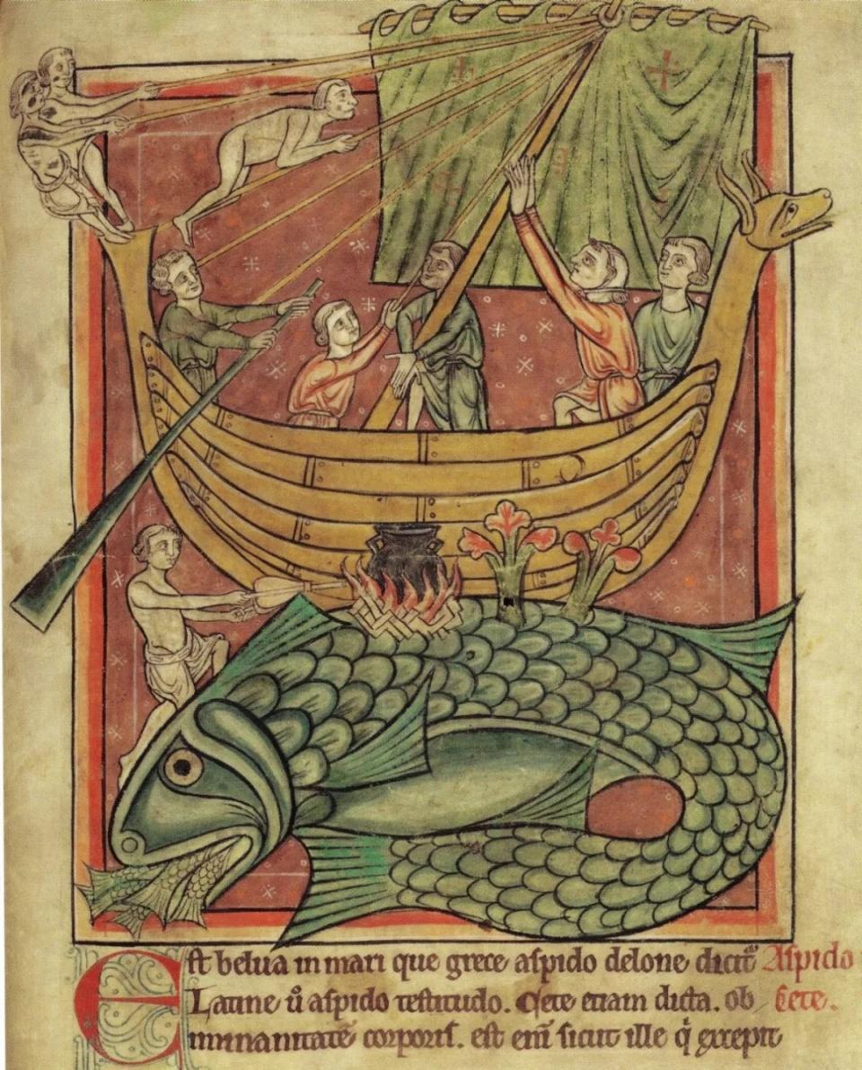 中世纪法国编年史作家让·德·茹安维尔,于1248年陪同路易九世穿越地中海,他和大部分的骑士一样吓坏了,专门写道:“去海上冒险的人真是疯了般勇敢,将自己置于重大的危险和致死的罪恶中,晚上入睡时都不知道第二天早晨会不会葬身水底。”(源自米歇尔·帕斯图罗《中世纪动物图鉴》)