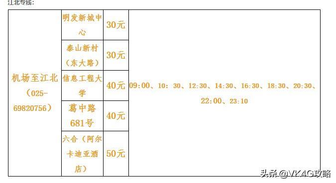 机场1号线(城东线):从早上第一个航班落地至当天最后一个航班结束,下客站为翠屏山宾馆、雨花广场、秦虹桥、七里街(机场宾馆)、西华门、南京火车站。(票价为20元/位)