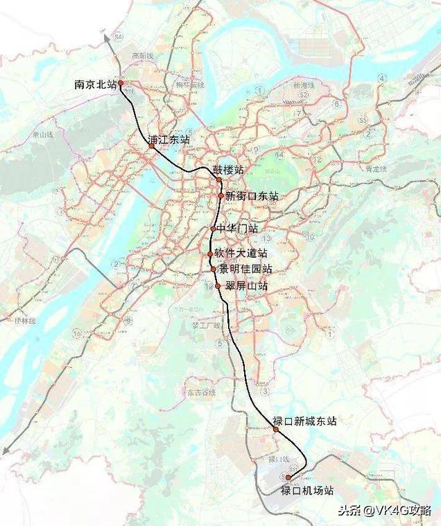站点:南京南站、翠屏山站、河海大学·佛城西路站、吉印大道站、正方中路站、翔宇路北站、翔宇路南站、禄口机场站、空港新城江宁站